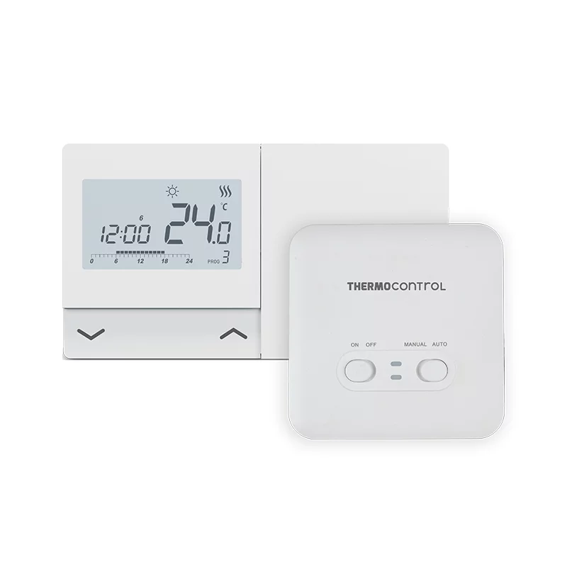 TC 910RF je programovatelný termostat, který slouží k bezdrátovému ovládání vytápěcích a chladicích zařízení. Jeho úkolem je udržovat komfortní podmínky v místnosti v souladu s harmonogramem nebo stálou teplotou nastavenou uživatelem. Termostat je z výroby spárován s přijímačem. Přijímač je připojen např. ke kotli.